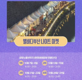별바다 나이트마켓은 부산에서 열리는 여러 야시장 중 하나로, 아름다운 바다 전망과 함께 야경을 즐길 수 있는 독특한 매력을 가지고 있습니다.