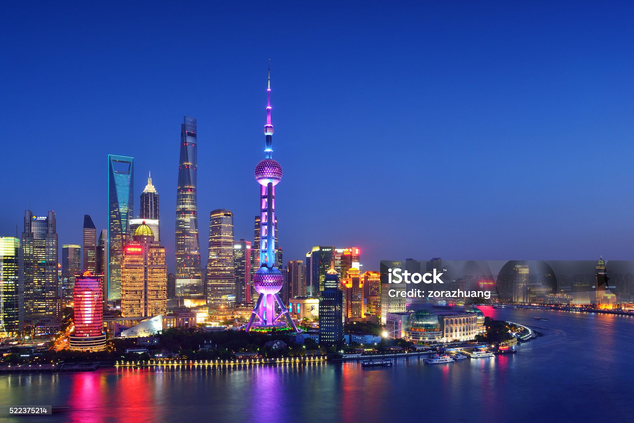 해가 질 무렵 황푸강 너머 네온사인으로 거대한 병풍을 친 것처럼 화려한 장관을 뽐내는 푸동의 멋진 야경을 감상해 보세요.